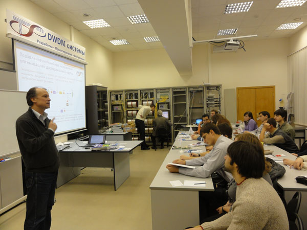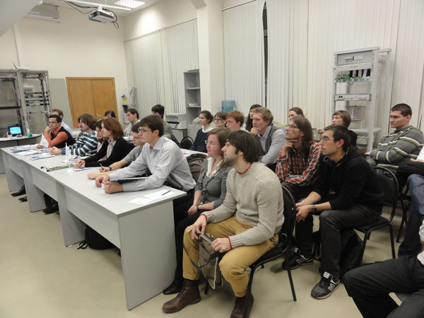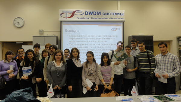 Встречу продолжила презентация Дмитрия Бондаренко - руководителя отдела R&D и демонстрация некоторых разработок отдела. Ребята также получили возможность подробно рассмотреть довольно редкие экспонаты. По просьбам аспирантов и студентов, профессор Наний О.Е. прочел интересную лекцию, посвященную специфике нашей компании, и ответил на все вопросы.